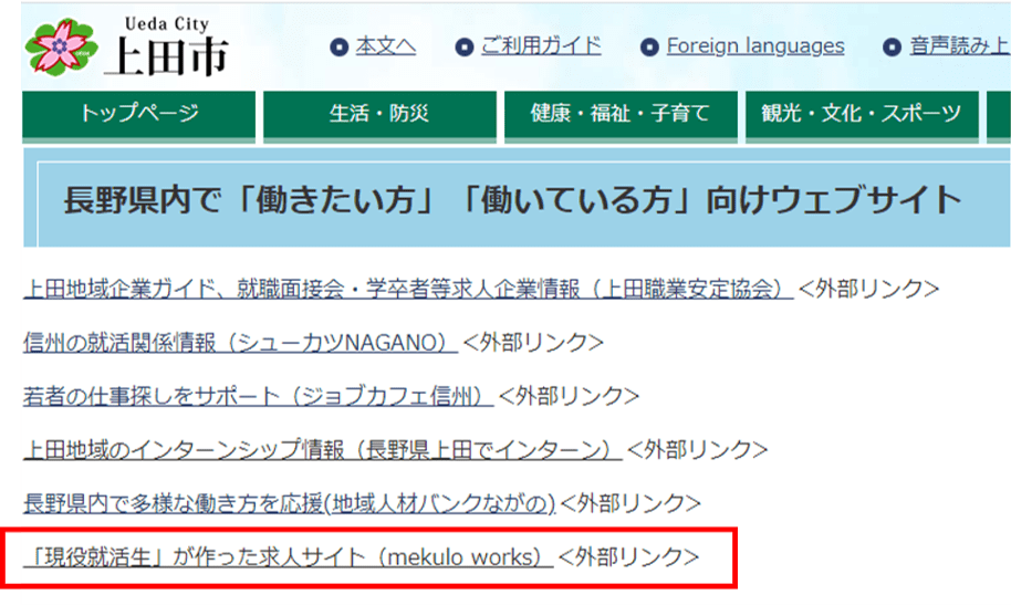 上田市からも応援していただき、ホームページで紹介していただいています。