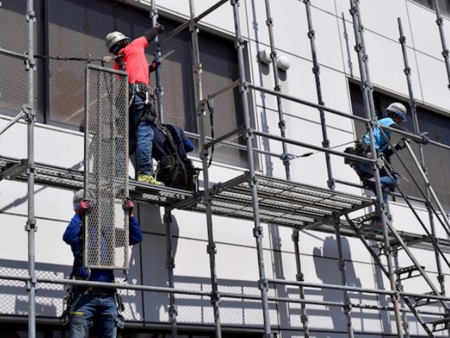 足場が完成した後は、他の業者の職人が仕事を行います。