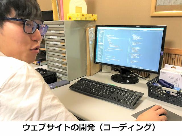 ウェブサイトのデザインやコーディングをして制作する仕事です。ウェブサイトは、お客様の課題を解決するために制作しますので、好きなデザインを作ればよい訳ではなく、その課題の解決に合ったウェブサイトをデザインする必要があます。また、HTML、CSS、JavaScriptのコーディングも行います。そういった制作業務に挑戦しながら取り組んでいただける方は、未経験でも歓迎します。