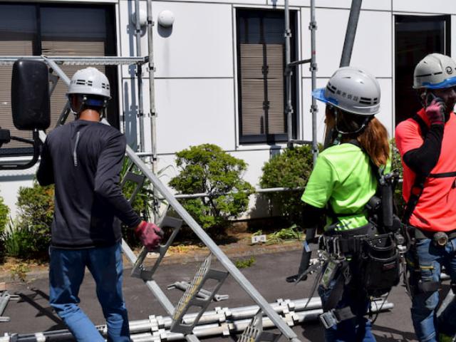 現場に到着したら、今日やることや仕事の流れをみんなで確認し、仕事を始めます。