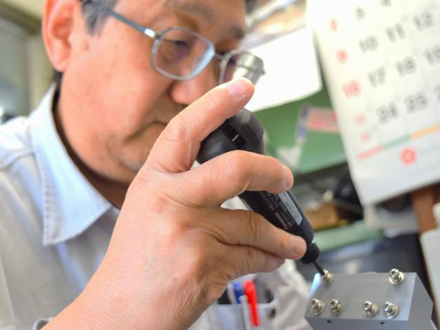 株式会社オークは、上田市の長瀬にある加工工場。医療機器や食品加工機器などに使われる、精密機械の部品を中心に手掛けています。