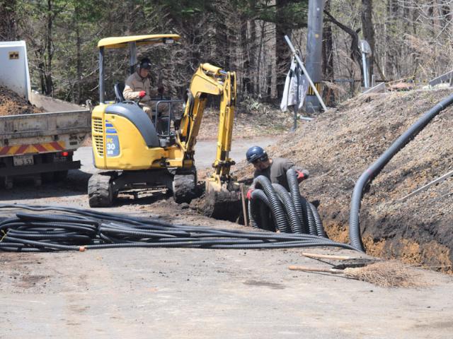 電柱の上での作業では、フルハーネス(墜落制止用器具)を使った上で、二人一組になり1人が高い場所に登り、もう一人は下で安全を見守ります。また、重機を使った仕事では、第三者が近づかないように対策をとり、他の工事敷設物の損傷を防ぐため、他の会社との打ち合わせをして確認するなど徹底した安全対策をしています。