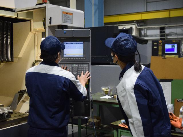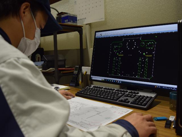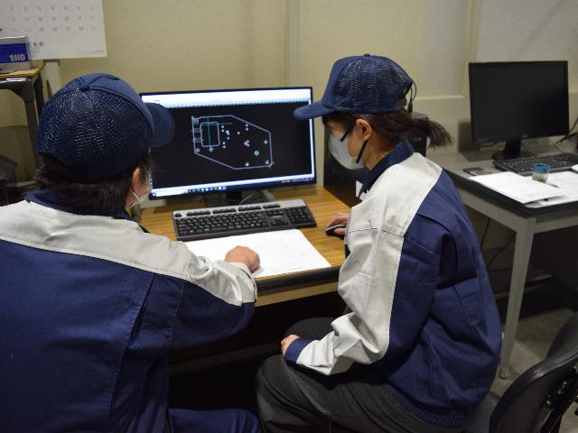 仕事に慣れていくと、設計図を見て自分の頭の中で加工順序を考えられるようになったり、もっと早くかつ効率よく加工するにはどうしたらいいかと考え、加工状況や、加工順序を変えたりと自分で試行錯誤するようになってきます。そのような時に、困ったことや分からないことがあっても、仲間がすぐ近くにいたり話しかけやすい環境なので、早急な問題解決が可能です。
