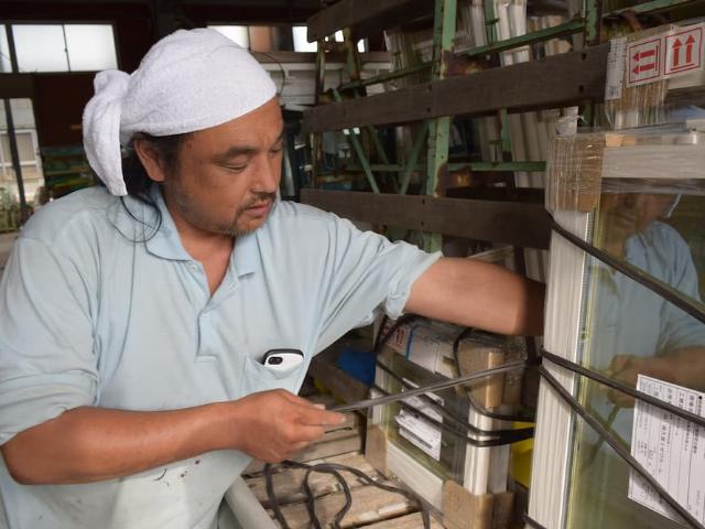 「サッシ・玄関周り」の部門では、サッシの組立、配達、現場取り付け、網戸交換を行っていただきます。サッシの組み立ては会社内にある作業場で行い、組み立てたサッシを車で配達、施工現場で取り付け作業を行います。