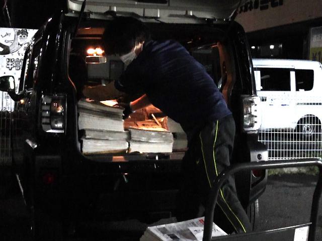 新聞配達員それぞれに、配布してもらう分の新聞を、配達員の家まで届けることもあれば、作業場まで取りに来てもらうこともあります。