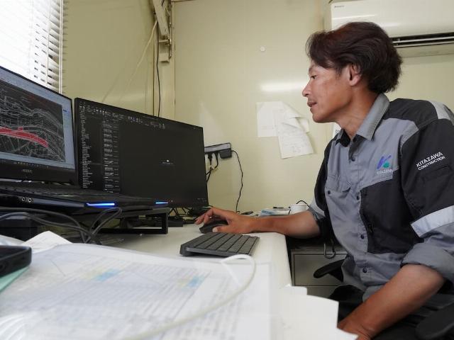 施工管理は主に、工事の進捗管理・安全管理、資材の発注、協力会社への指示などがあります。その他に、官公庁へ提出する資料の作成や写真の撮影を行います。現場が終わった後、日によっては官公庁に提出するための資料を作成するため、18時30分くらいまで仕事をすることもあります。