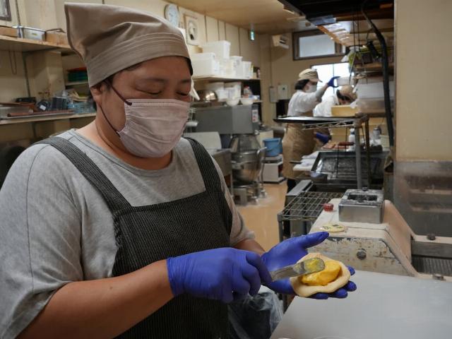 それぞれのパンごとに、生地を伸ばす、中身を包む、といった工程を1つずつ覚えていただきます。