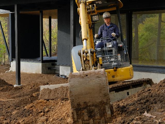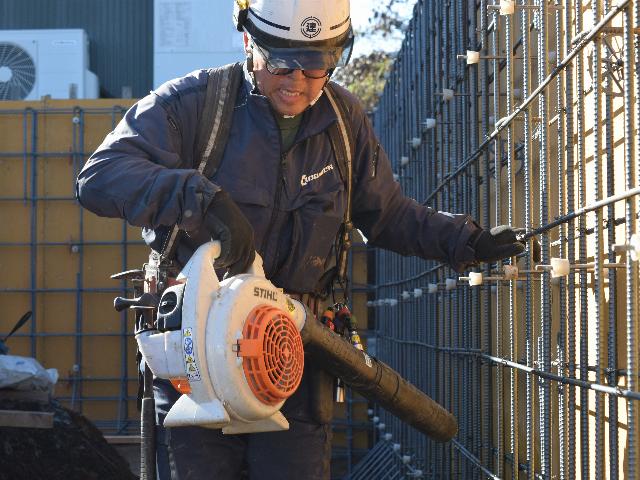 建物の基礎工事、駐車場舗装や擁壁工事、造園の現場仕事です。未経験でも構いませんが、仕事の内容は入社後に希望を聞きながら決めていきます。石、ブロックを積む、型枠でコンクリートを成形して基礎を作る、法面(のりめん:山地を削ったり土を盛ったりしてできる斜面)を作るといった作業をします。一年を通じて仕事があり、現場では小平建設の現場管理人が具体的な指示を出し、仕事の仕上がりを確認してくれます。