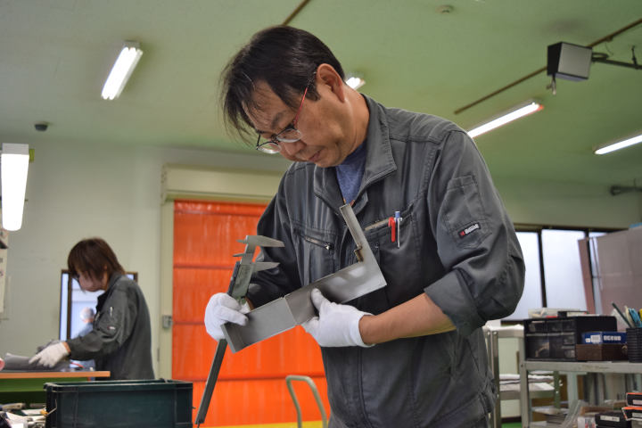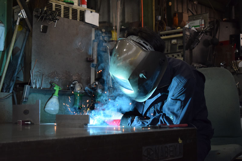 金属の板や塊を加工して、製品を作る会社です。一人の職人が設計、図面作成から切削、曲げ、磨き、溶接、表面処理、組み立て、取り付けまで、オーダーメイドの金属製品づくりを幅広くこなします。金属加工のすべてを身につけたい人におススメ!