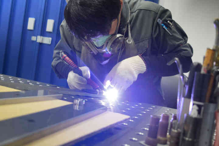 産業用機械の中で、その機械を入れるための外装部分を作っています。ペットボトルやエアコンなどの製造機械の外装を作っています。また、産業用機械の部品も作ります。