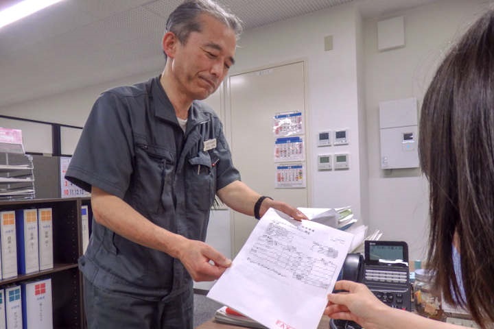 最後に、図面が完成したら紙に出図して事務職の担当者に手渡します。