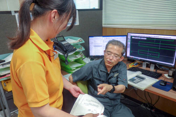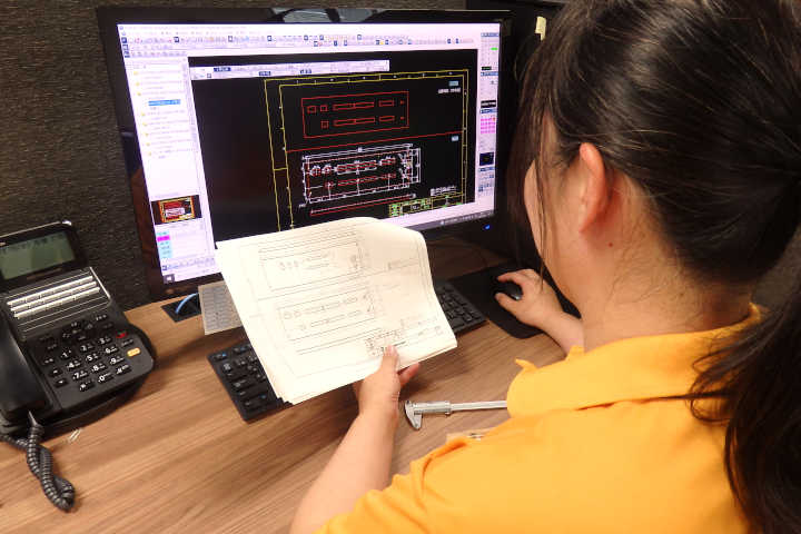 私は図面を読むことはできたので、まずCADPACの操作方法を覚えました。正直これが仕事を覚える中で最も大変で、最初はただ線を引くだけでも一苦労でした。マニュアルを読みながら、実際にCADを操作していくことで覚えていきました。