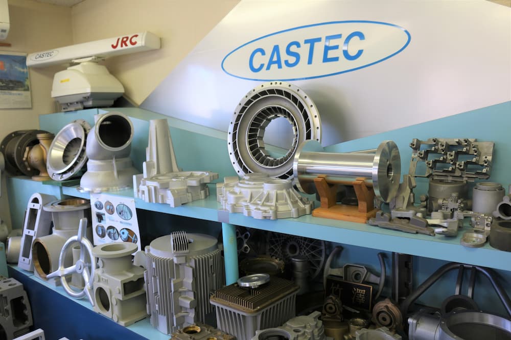 キャステクには、青木村にある本社工場と上田市丸子にある丸子工場がありますが、本社工場では砂型鋳造と加工を行っており、丸子工場では金型鋳造を行っています。
