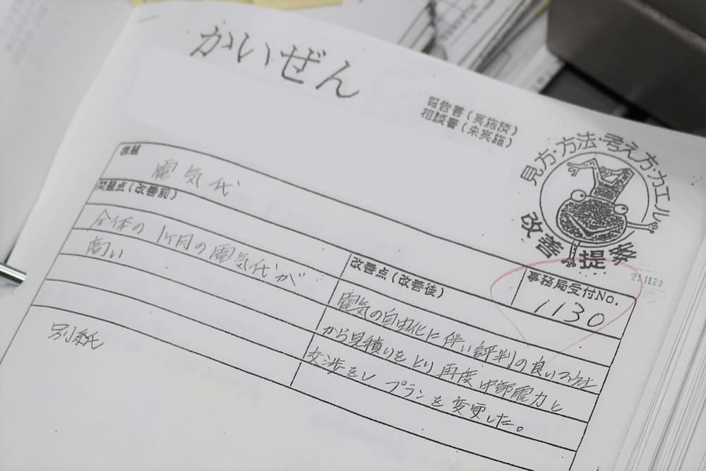 実際に、改善提案をした例として、電気代プランの見直しを提案した社員がいます。年間最優秀賞にも選出されたこの提案のおかげで、電気代が年間で数百万円もの節約となり、会社に良い影響が与えられています。
