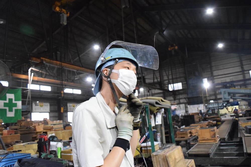 作業自体は同じことの繰り返しも多く、熱さにさらされたり、重いものを持ったりと、体力勝負な面もあります。しかし、従業員がケガをしないように会社として様々な安全対策(化学物質を通さない安全性の高いマスクの着用等)を行っており、現場で働く社員の安全への意識も高いです。