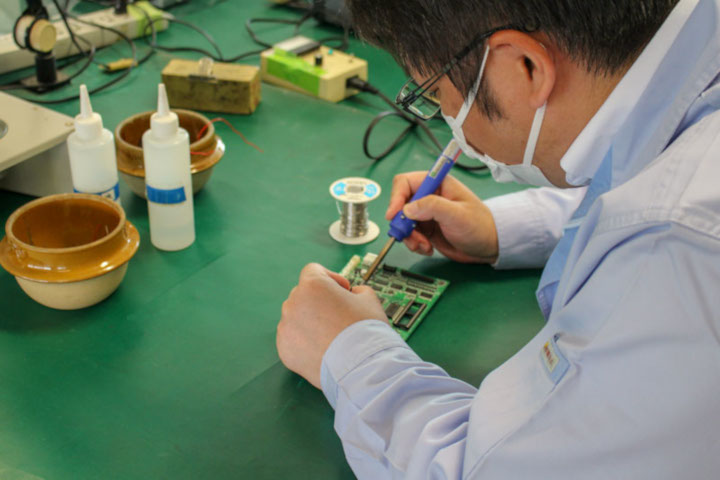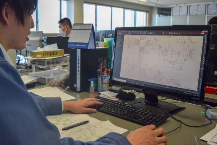 私が担当しているのは、電気回路の設計と試作機械のテストです。試作を作る工程は協力工場へお任せしており、試作が出来上がってくれば、動作テストをします。設計担当者が評価をすることが多いですが、第三者が評価をする場合もあります。