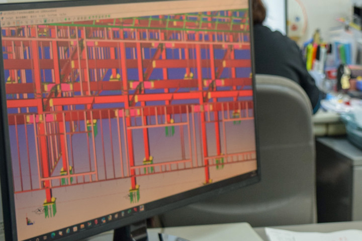 鉄骨設計の仕事は、お客様から注文を受け、胴縁を加工するために必要な加工図、図面を作成して、製造現場に回すことです。