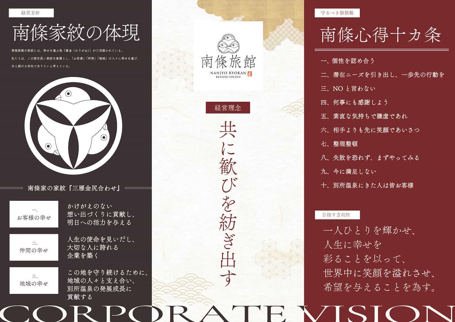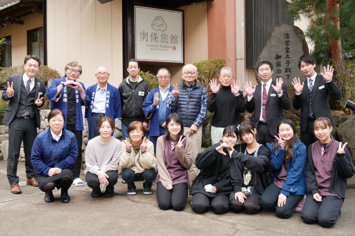 南條旅館の家紋には、幸せを運ぶ鳥と言われている、かりがねが3羽描かれています。3羽のかりがねはそれぞれ、お客様、従業員、そして地域を表現しています。この理念をもとに、南條旅館では数多くの地域イベントの企画を行っています。