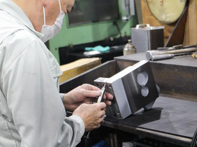 高精度の工作機械金属加工を得意とする会社です。特に組み合わせ部品の妥協しない精度を認めていただき、お客様には「やっぱりミヤマさんでなければ」と指名されることが多いです。精密治工具製作組立・各種専用機製作・各種金型、金属加工などの工作機器の設計や金型の製造、部品加工を行います。 フライス加工で使用する機械は、SHIZUOKA鉄工所のR-5VNです。マシニング加工ではOKKを使用しています。