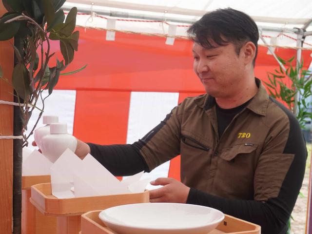 家や工場など、建物づくりの始まりを告げる「地鎮祭」。私たちは、その特別な時間を支える会場づくりをしています。現場は長野県内全域にあります。